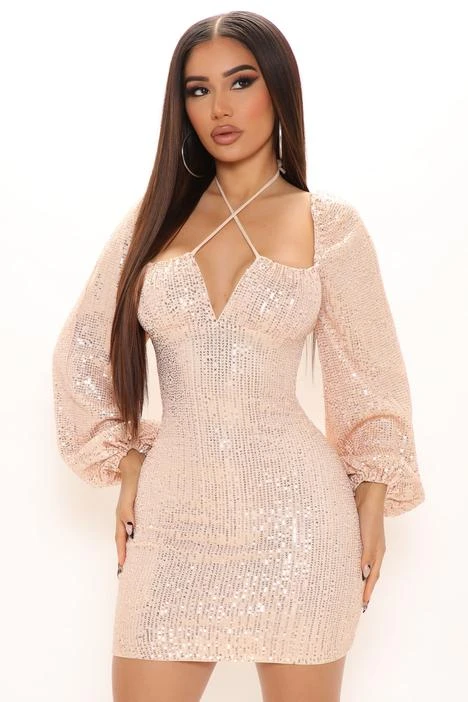 Cocktail Party Sequin Mini Dress - Rose Gold