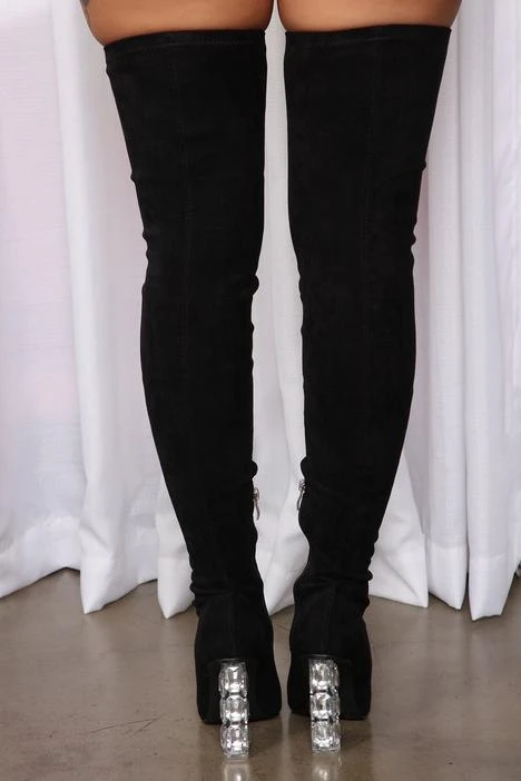 Diamonds Shining Over The Knee Boots - Black